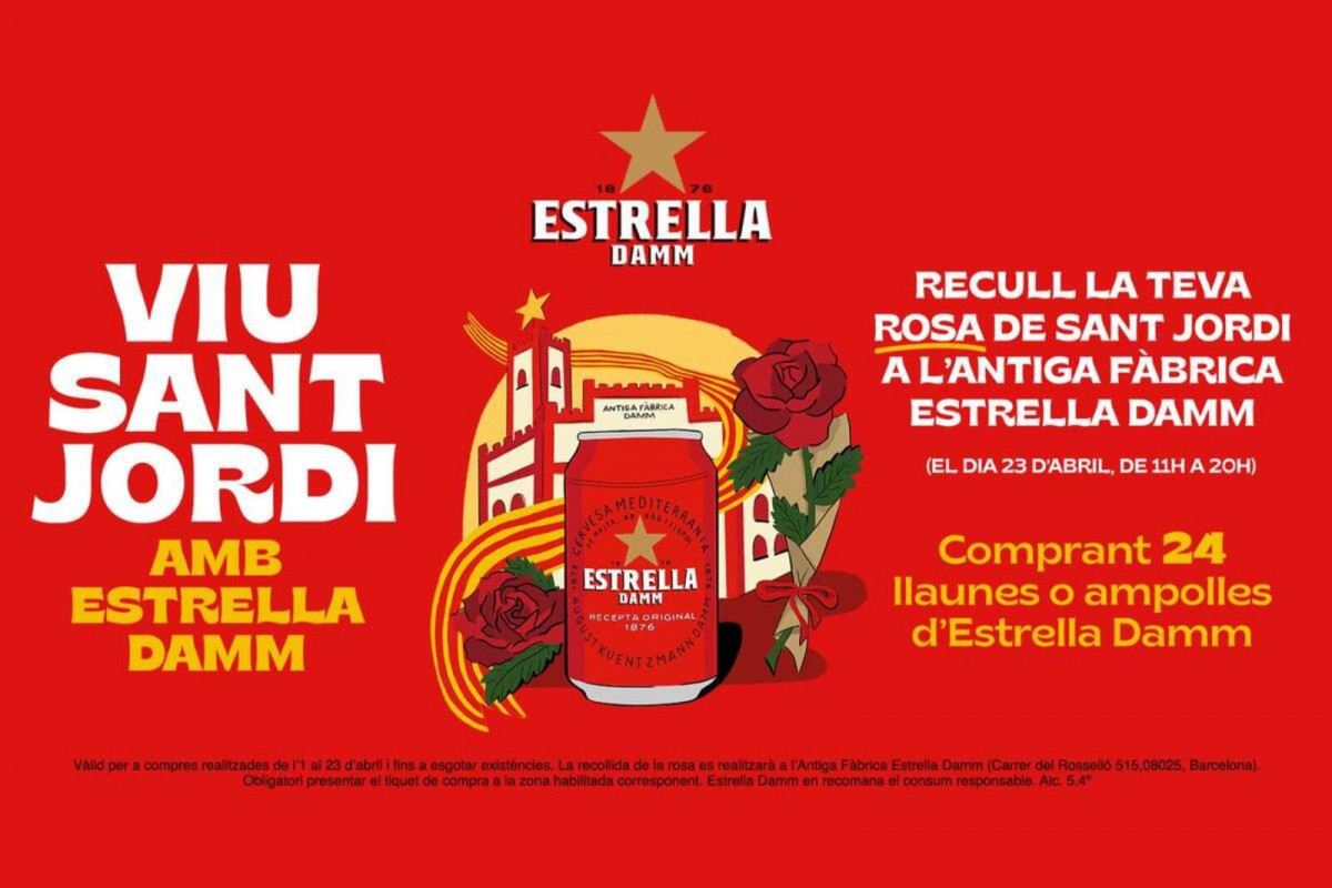 Però això no és tot, del 18 al 23 d'abril, per la compra de 24 ampolles o llaunes d'Estrella Damm, a més de la borsa, també s'entregarà una rosa de Sant Jordi.