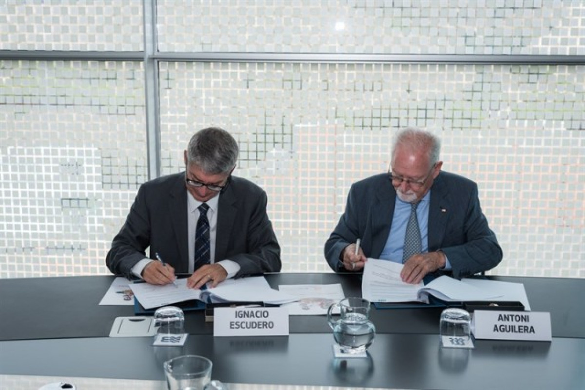 El director general d'Aigües de Barcelona i patró delegat de la Fundació Agbar, Ignacio Escudero, ha signat el conveni amb el president de Creu Roja Catalunya, Antoni Aguilera.