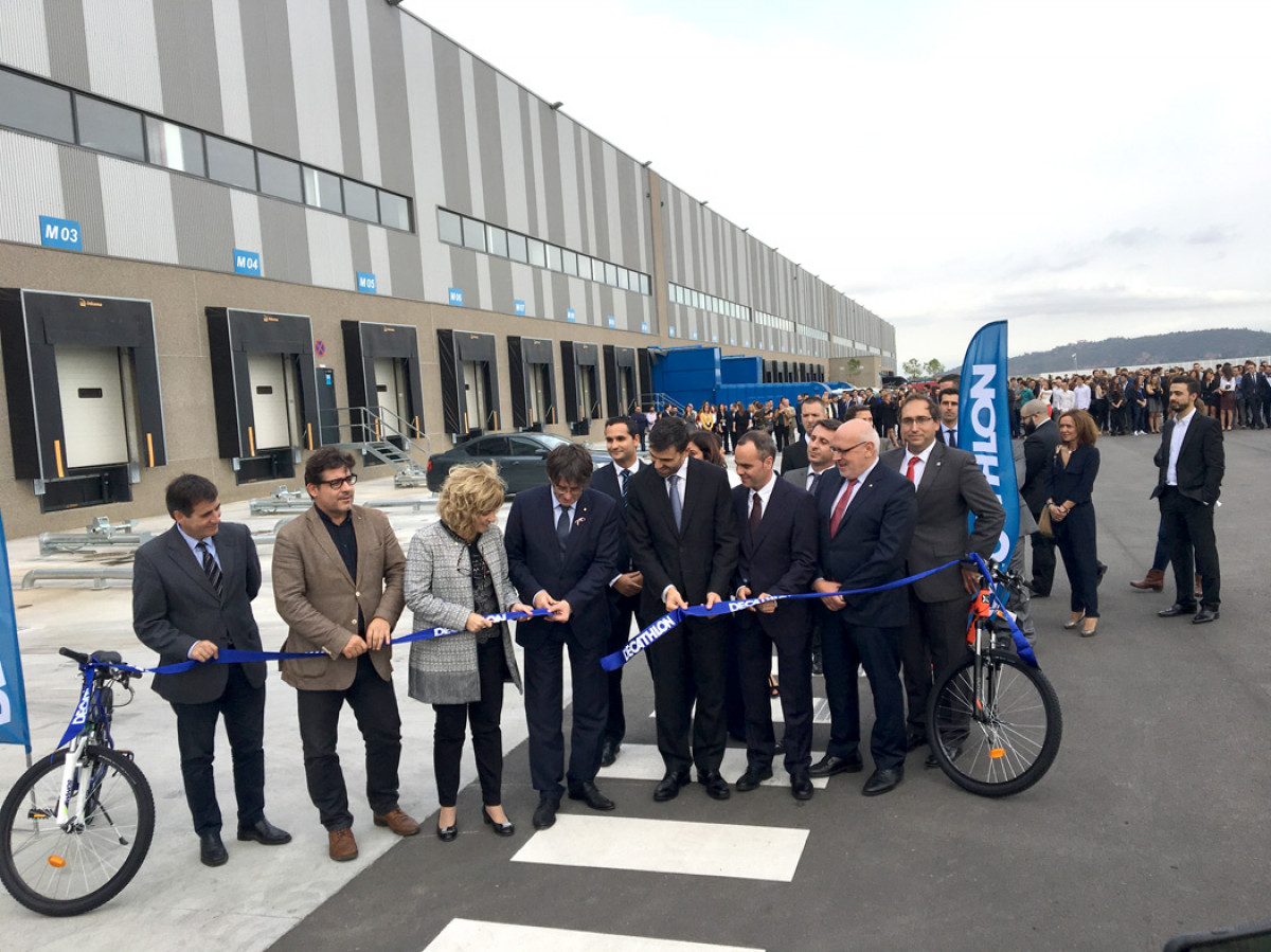 El president de la Generalitat, Carles Puigdemont, ha presidit l'acte d'inauguració del nou centre logístic regional de Decathlon a Sant Esteve Sesrovires que, amb 40.000 metres quadrats de superfície i 350 treballadors, centralitzarà la distribució per a Catalunya, el País Valencià i les Illes Balears.