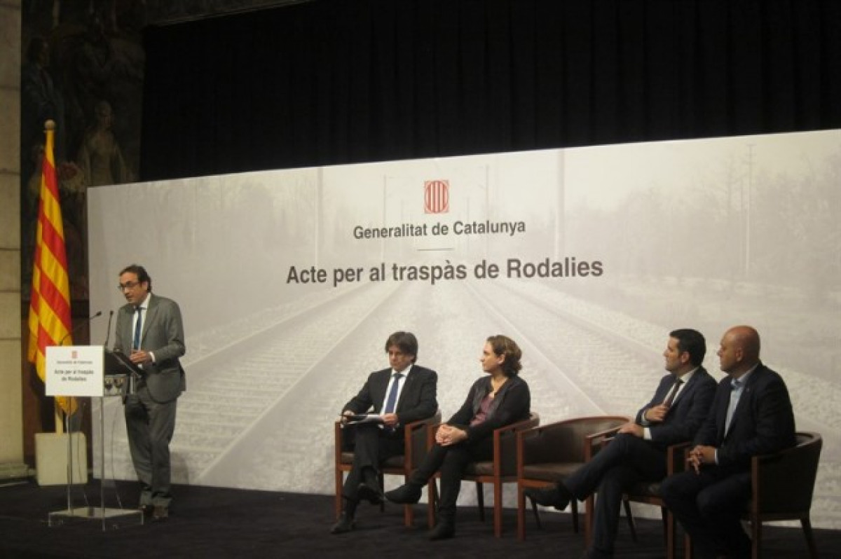 Així ho ha anunciat aquest dimecres el conseller de Territori i Sostenibilitat, Josep Rull, en un acte celebrat a la Generalitat i encapçalat pel president, Carles Puigdemont, en què s'ha escenificat un front comú amb el món local, agents econòmics i societat civil per reclamar a l'Estat el traspàs total de Rodalies i Regionals.