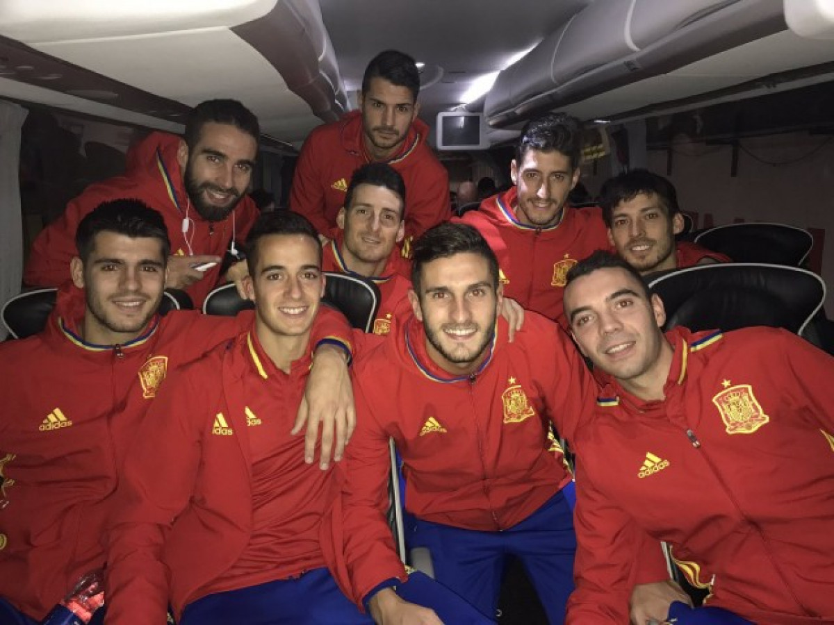 Alguns jugadors de la 'Roja' de camí a Londres // Foto: @SEFutbol