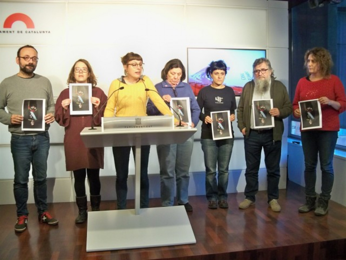 En la compareixença hi havia els diputats Benet Salellas, Eulàlia Reguant, Mireia Vehí, Gabriela Serra, Anna Gabriel, Joan Garriga i la membre del Secretariat Nacional Núria Gibert, que durant les declaracions van trencar la fotocòpia amb la imatge de Felip VI.