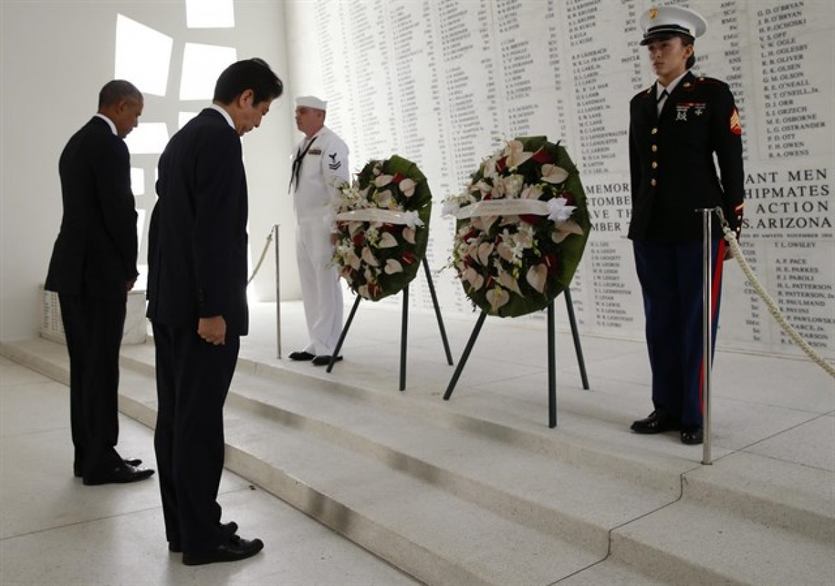 Un dia abans, Abe va manifestar els seus respectes al Cementiri Nacional Memorial del Pacífic, també a Hawaii.