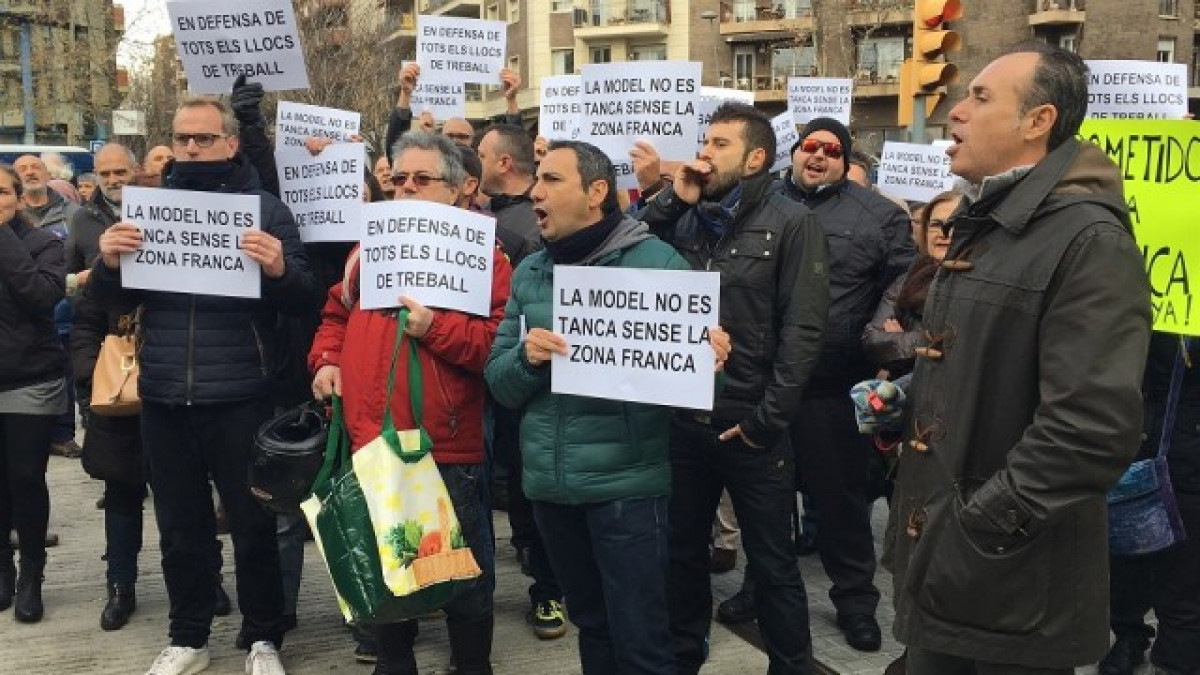 Els manifestants han protestat amb xiulets i demanant la dimissió del conseller de Justícia, Carles Mundó, i han exhibit pancartes amb consignes com "en defensa de tots els llocs de treball" i reclamant l'obertura del centre de preventius de la Zona Franca.