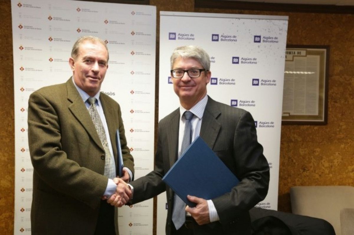 El director d'Agbar, Ignacio Escudero, i l'alcalde de Sant Adrià de Besòs (Barcelona), Joan Callau, han signat aquest dimecres el protocol per afrontar l'emergència en l'àmbit de la pobresa energètica per fixar el procediment per a garantir el subministrament en els casos d'impagament per manca de recursos econòmics.