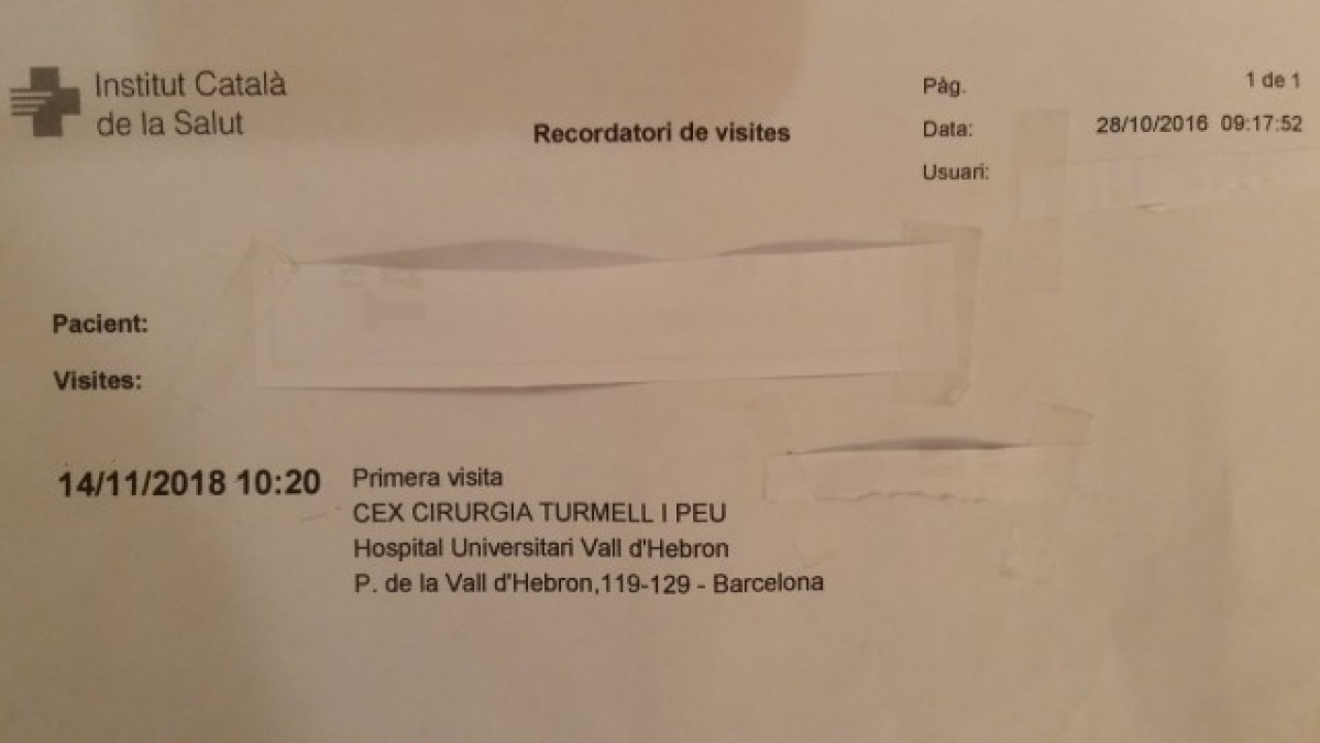 L'últim cas conegut és el d'un pacient del hospital Vall d'Hebron al qual li han convocat la primera visita per a finals de l'any vinent i mentrestant haurà de suportar el dolor. Aquest és un més dels molts casos que denuncia la plataforma.