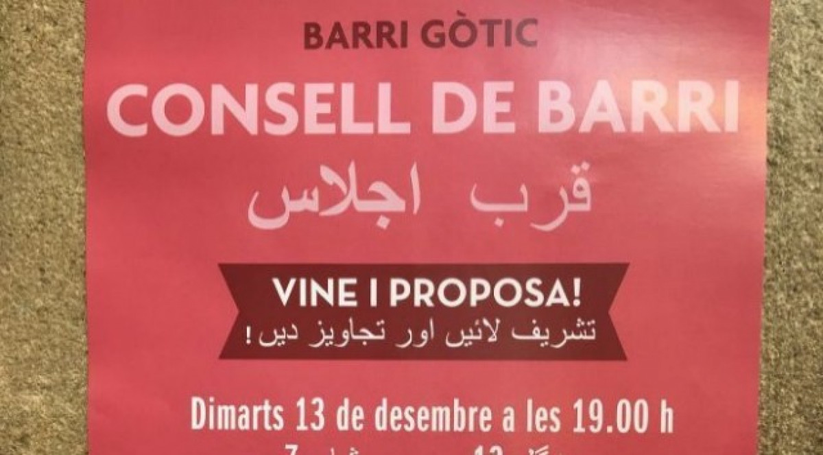 Entre el passat novembre i desembre, l'Ajuntament de Barcelona va confeccionar uns cartells per a l'Audiència Pública i el Consell de Barri de Ciutat Vella en català i tagalo i urdú. Al PP no li va agradar aquesta iniciativa i va preguntar a l'executiu liderat per Colau el per què.