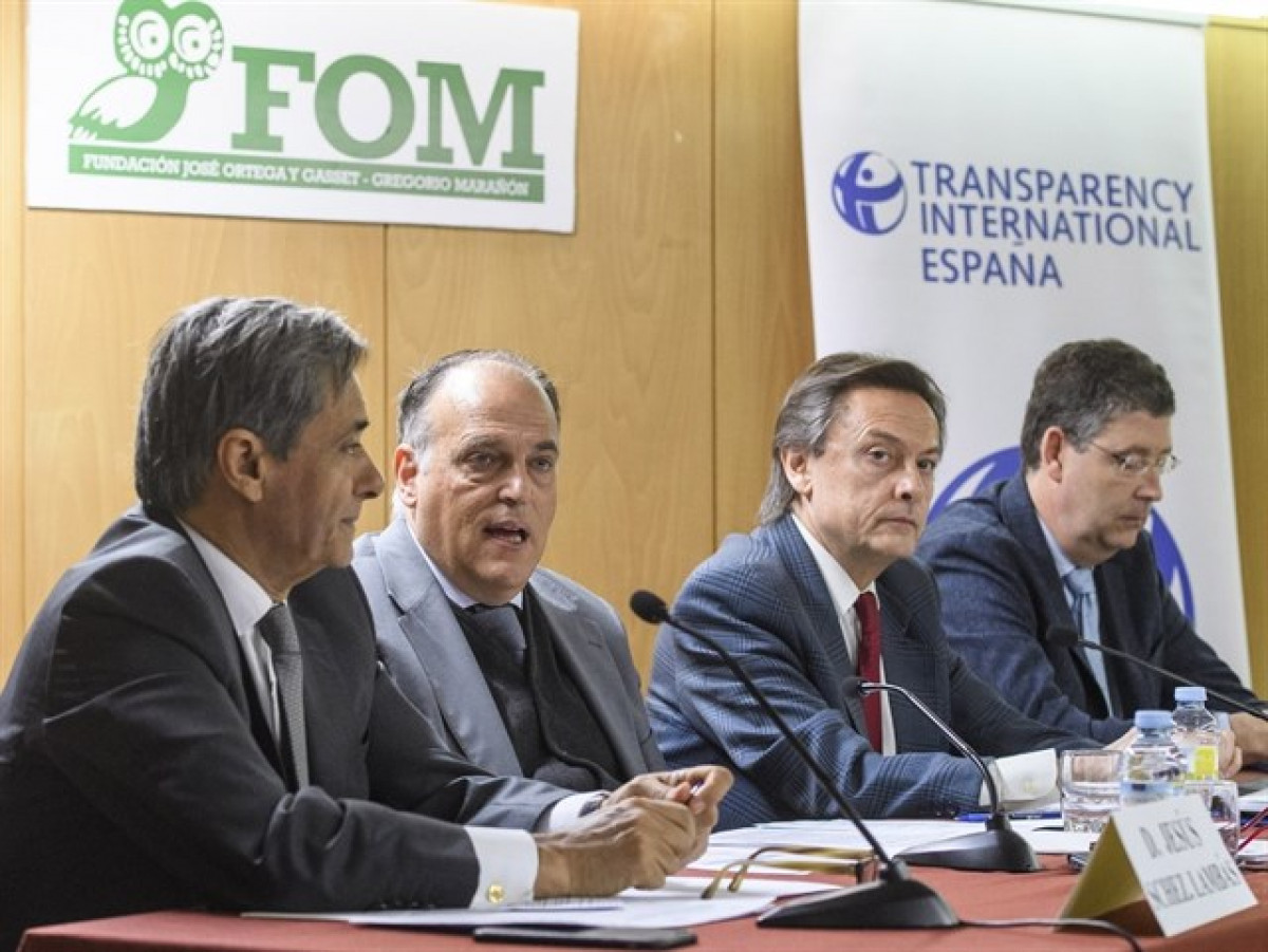 Tebas va valorar el treball independent de TI perquè, segons ell, és "important" que organismes d'aquest prestigi "vigilin" i "controlin els clubs professionals. "Queda perquè en transparència mai no s'arriba a l'excellència, però la nota és bona. Aquesta avaluació ens incentiva cada any i els qui ens trobem en aquestes institucions sabem que hem de donar el màxim d'explicacions", ha indicat.