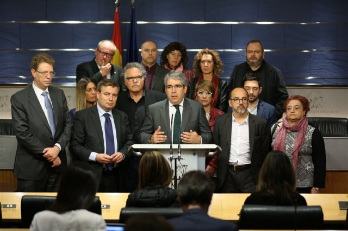 Homs ha comparegut en roda de premsa al Congrés acompanyat de la resta de membres del PDeCAT i per altres parlamentaris com els portaveus d'Esquerra (ERC), Joan Tardà, i del PNB, Aitor Esteban.