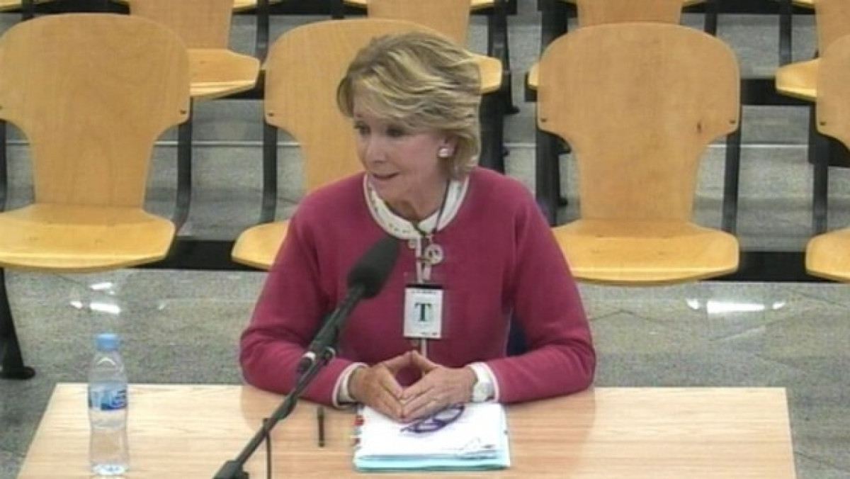 La Secció Segona de la sala penal de l'Audiència Nacional, que jutja els 37 acusats per la primera època d'activitats de la trama Gürtel (1999-2005), ha escoltat aquest dijous a l'expresidenta de la Comunitat de Madrid Esperanza Aguirre , que ha estat citada com a testimoni del fraccionament de les factures dels serveis prestats per les empreses del 'capitost' de la xarxa corrupta, Francisco Correa, quan ella ostentava aquest càrrec.