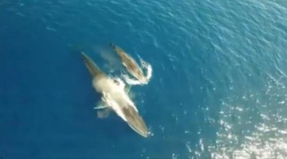 A menys de nou milles nàutiques de la costa, l'Associació EDMAKTUB ha captat amb un dron la travessia de dos rorquals en perill d'extinció.