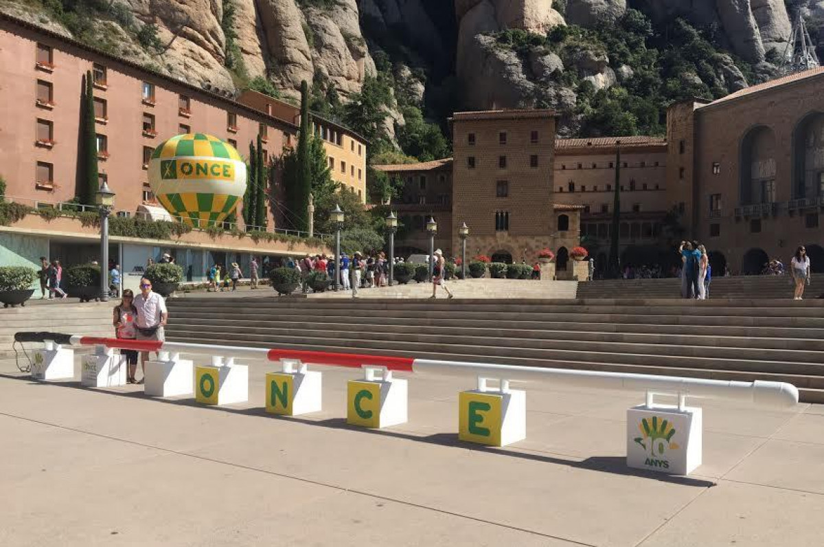 El Dia de la Gran Família de l’ONCE a Catalunya ha girat entorn d’aquest homenatge amb un bastó gegant de gairebé 20 metres, probablement el més gran del món, de color vermell i blanc, els colors que els identifiquen.