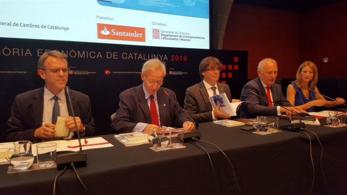 Així s'extreu de la Memòria Econòmica de Catalunya 2016, que s'ha presentat aquest dijous a la Casa Llotja de Mar de Barcelona amb el president de la Generalitat, Carles Puigdemont; el president del Consell de Cambres de Catalunya, Miquel Valls; el subdirector general de Banc Santander, Luis Herrero; la directora de la Memòria, Carme Poveda; el degà de la UVIC, Xavier Ferràs, i el catedràtic de la Universitat Pompeu Fabra (UPF) Oriol Amat.