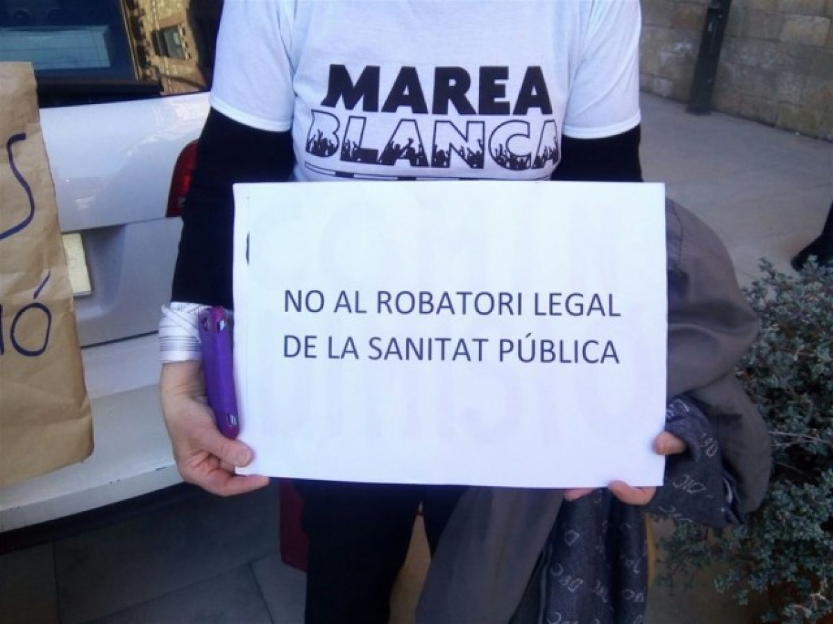 La plataforma Marea Blanca denuncia que el conseller de Salut ha elaborat una reforma que dóna peu al fet que empreses del sector privat es poden acollir a aquesta normativa per gaudir del sector públic, com ja fa Barnaclinic.