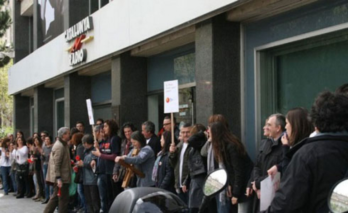 Manifestació de periodistes les portes de Catalunya Ràdio