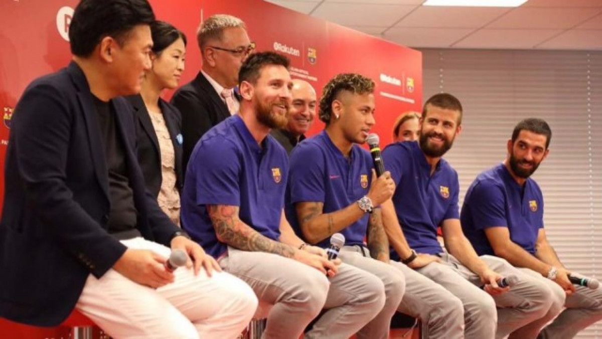 Els jugadors del Barça a la presentació de Rakuten.
