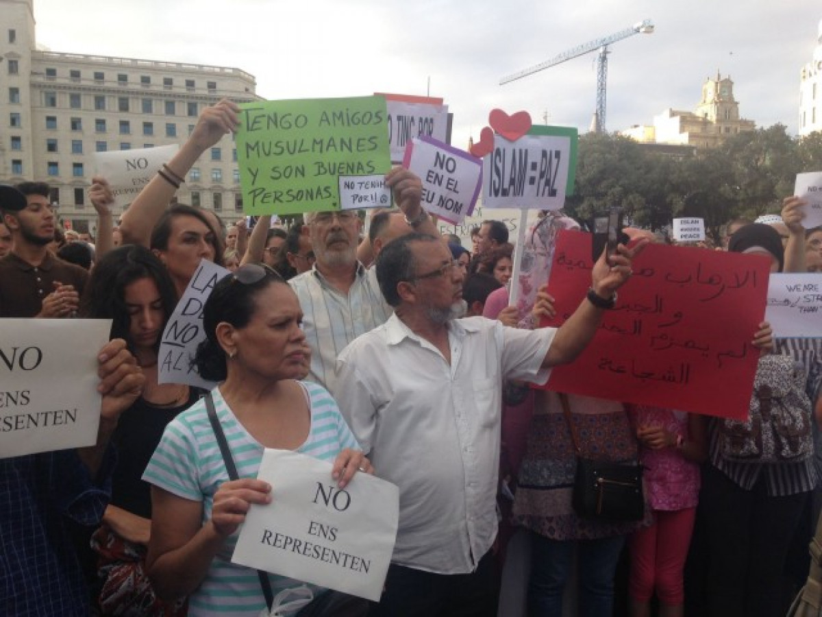 La comunitat musulmana de Catalunya ha clamat aquest dilluns contra el terrorisme en una concentració a la plaça Catalunya de Barcelona, al qual ha seguit una manifestació per un lateral de la Rambla per condemnar els atemptats terroristes a la capital catalana i Cambrils (Tarragona).