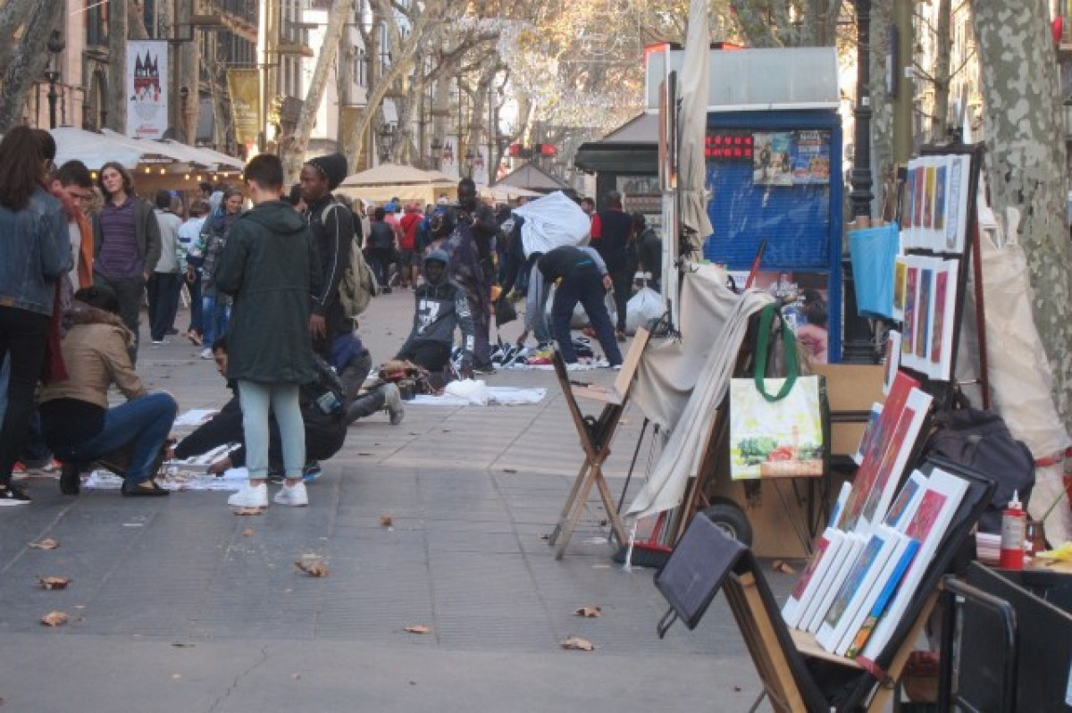 Un grup de manters s'han escapat de la Guàrdia Urbana després d'iniciar una batussa.