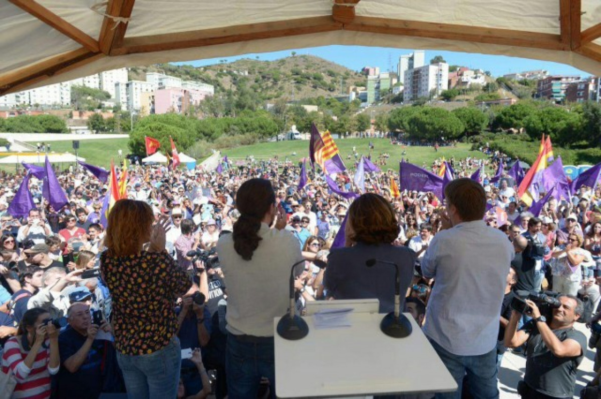 Elisenda Alemany, Pablo Iglesias, Ada Colau i Xavier Domènech a l'acte de CatComú per la Diada.
