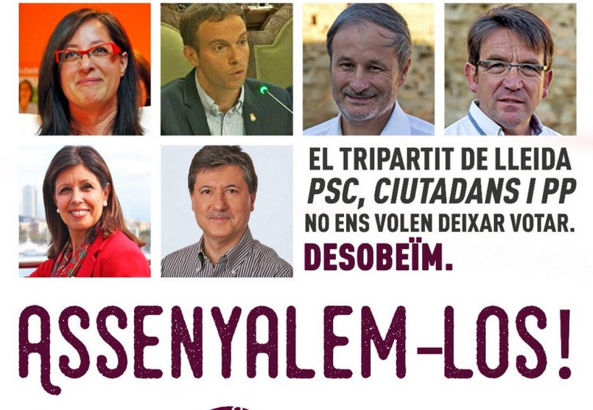 El cartell, difós per les xarxes socials d'Arran Lleida, mostra les fotos dels regidors que estan treballant per impedir la celebració del referèndum il·legal.