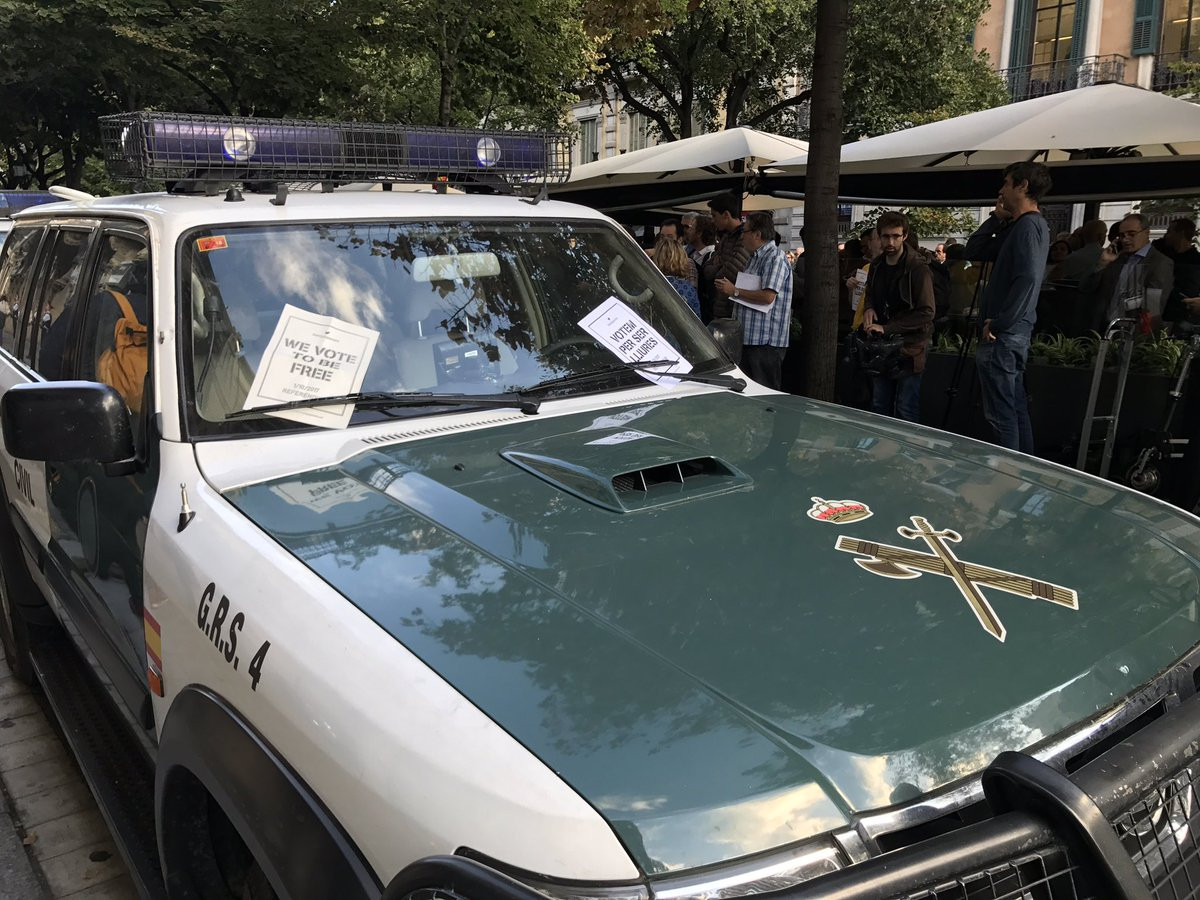 Aquest dimarts, l'institut armat va intervenir 45.000 sobres nominals (el 80% del total) per a la constitució de les meses electorals de l'1-O en els registres que va dur a terme en diferents seus de l'empresa de missatgeria Unipost. Fins ara la Guàrdia Civil ha bloquejat 32 pàgines web i també ha requisat 1,5 milions de cartells, díptics i fullets proreferéndum , tot això en funcions de policia judicial.