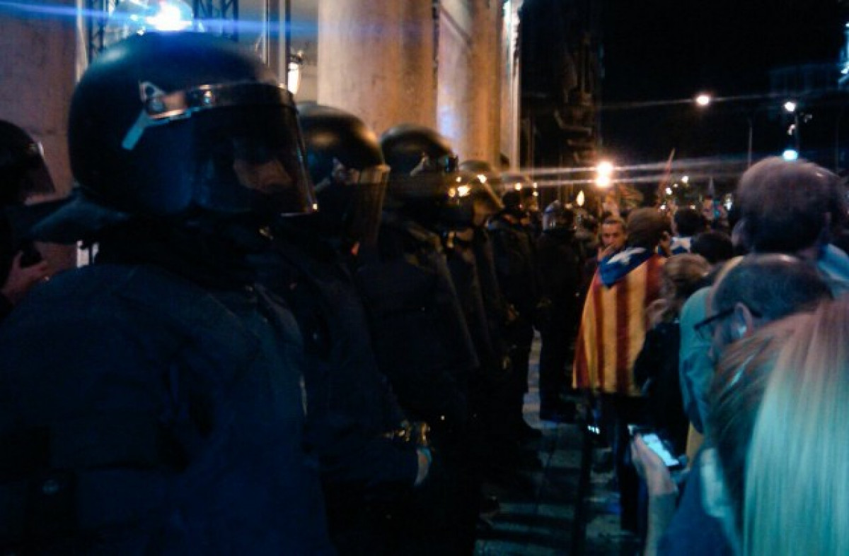 Los manifestantes organizan un cordón frente al de los Mossos, que esperan la salida de los agentes de la Benemérita | La Guardia Civil pide al Gobierno que asuma el control de los Mossos por su 'pasividad'.