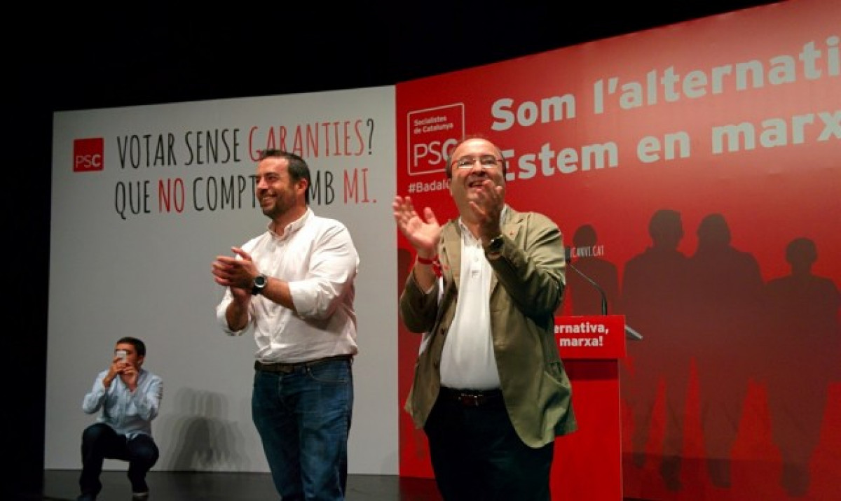 Miquel Iceta aquest dissabte, a Badalona, amb Álex Pastor.