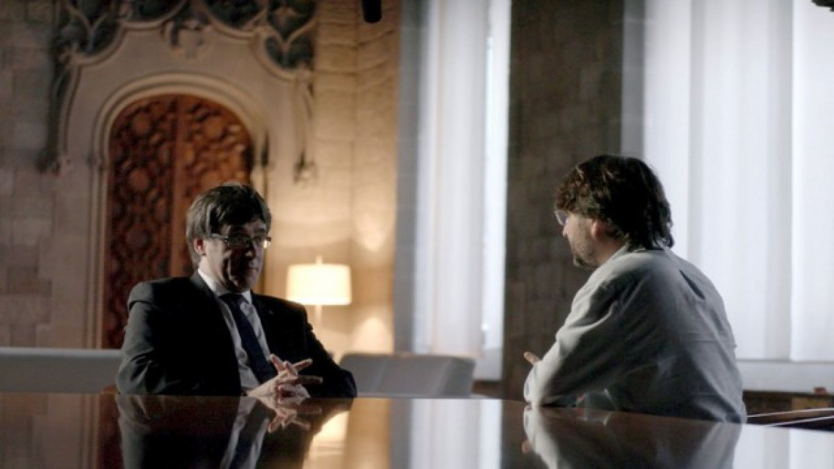 Carles Puigdemont i Jordi Évole al programa 'Salvados'.