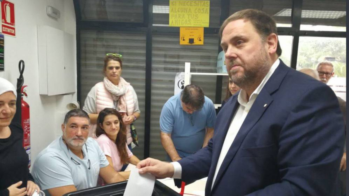 Oriol Junqueras, vicepresident del Govern, votant aquest diumenge.