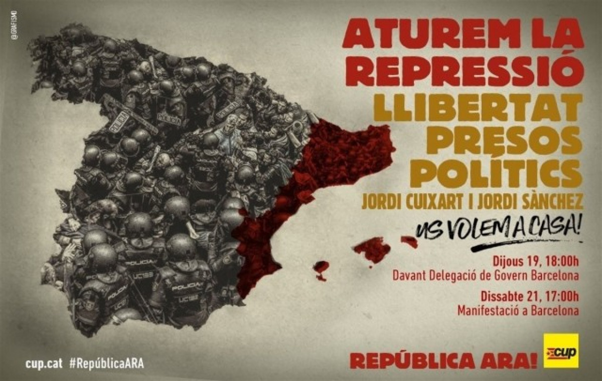 "Aturem la repressió! Sortim al carrers sense por a cridar 'República Ara', 'Llibertat Jordis'", han expressat en una entrada al seu compte de Twitter.
