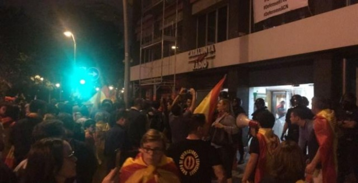 El Sindicat de Periodistes de Catalunya (SPC) ha rebutjat l'atac a Catalunya Ràdio ia una unitat de Betevé va tenir lloc divendres a la nit durant una manifestació contrària a la independència de Catalunya, proclamada a la tarda al Parlament.