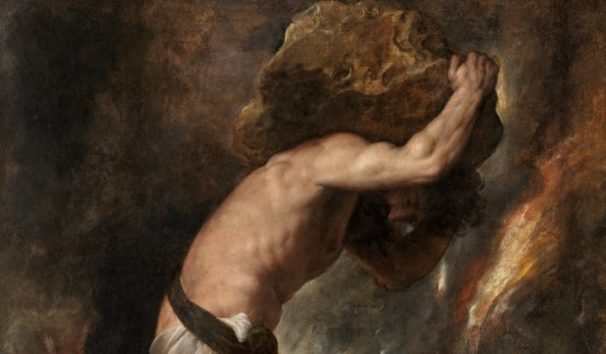 Obligat a repetir una tasca improductiva, que no crea ni aporta res i que mai aconseguirà concloure. Aquí radica la seva frustració, aquí també la causa del seu patiment. Tasca àrdua, cruel i buida, en la qual el filòsof existencialista Albert Camus (1913-1960) va veure una de les claus de la problemàtica existencial humana.
