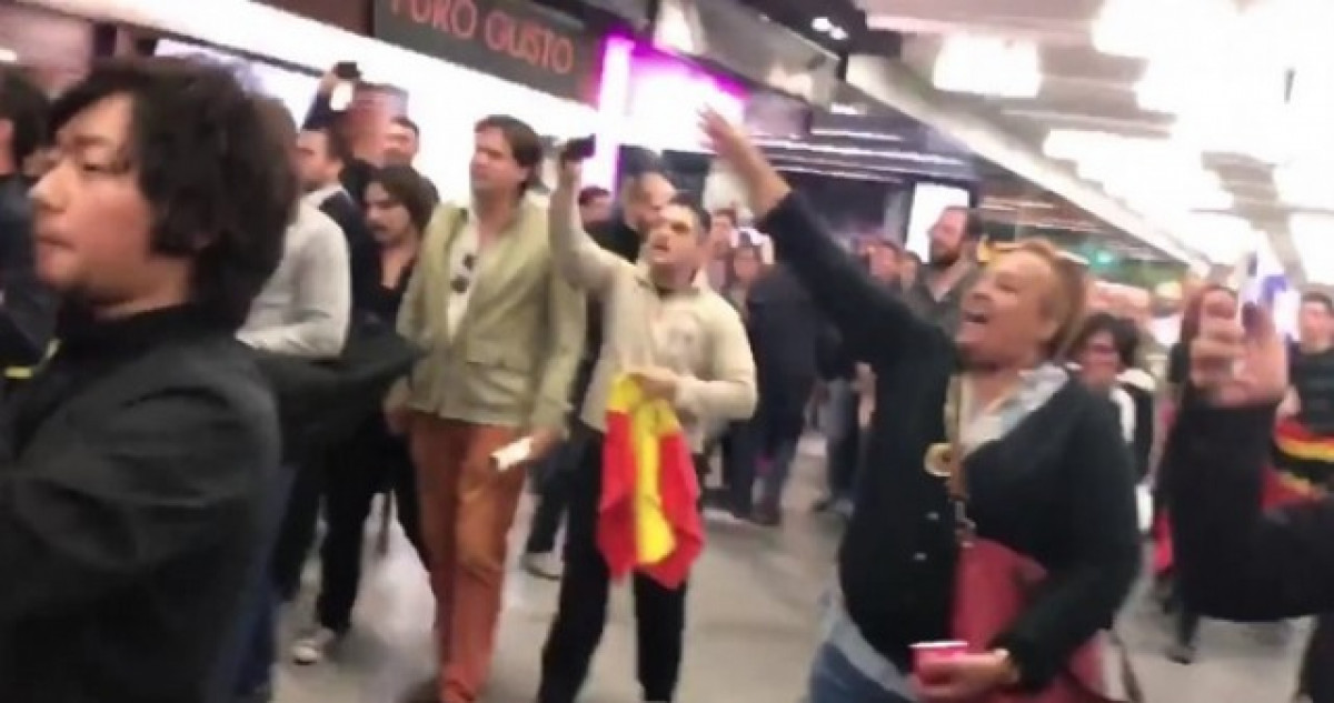 Entre crits de 'fora', 'Puigdemont dimissió' i 'No ens enganyen Catalunya és Espanya', els ultradretans han perseguit per l'estació d'Atocha als polítics catalans, que van haver de ser escortats per agents de la Policia Nacional.