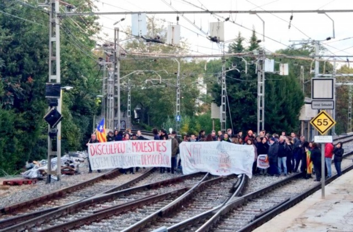Tall de trànsit ferroviari a Sant Cugat del Vallès, el 8N