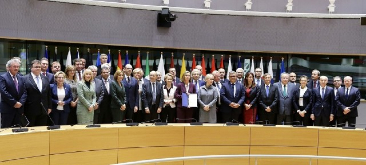 Un total de 23 països de la Unió Europea han signat la carta per notificar la seva intenció de sumar-se a la cooperació estructurada permanent en defensa (va pescar, per les sigles en anglès), en una cerimònia a Brussel·les dels ministres d'Exteriors i Defensa, inclosos Espanya, França, Alemanya i Itàlia, els que més han empès per avançar en la integració militar.