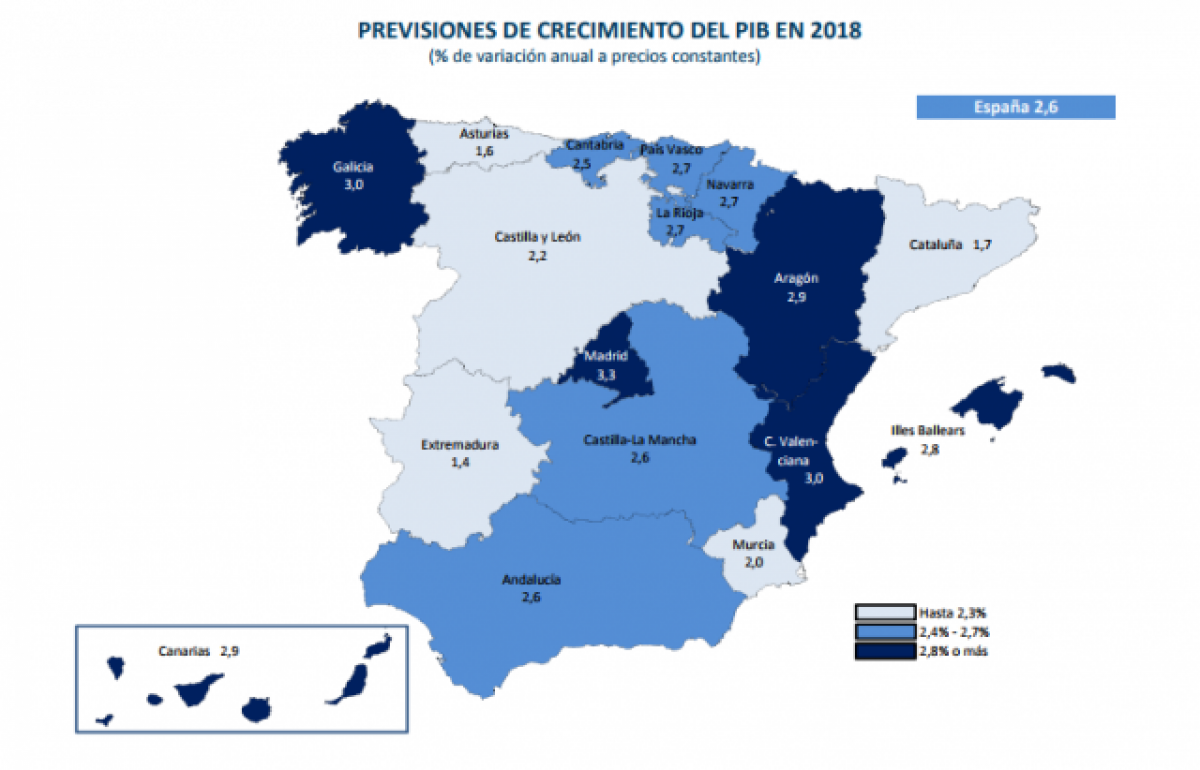 D'altra banda, Madrid, Galícia i el País Valencià són els territoris espanyols que millors perspectives de creixements tenen, per sobre del 3%.