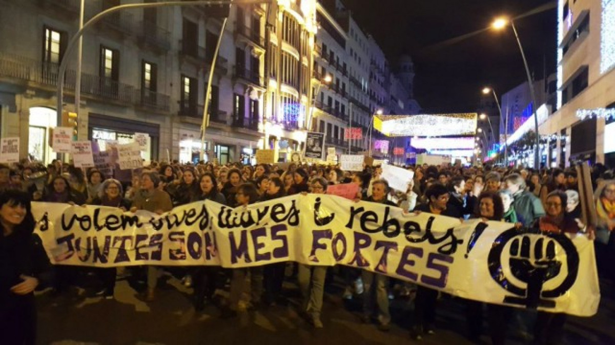 La manifestació, convocada per la plataforma Novembre Feminista, que agrupa una quinzena d'entitats, sota el lema 'Ens volem vives, lliures i rebels', ha començat a la plaça Universitat a les 18.00 hores, i ha avançat per plaça Catalunya i Via Laietana fins a plaça Sant Jaume, on la coreògrafa Sol Picó ha llegit un manifest.