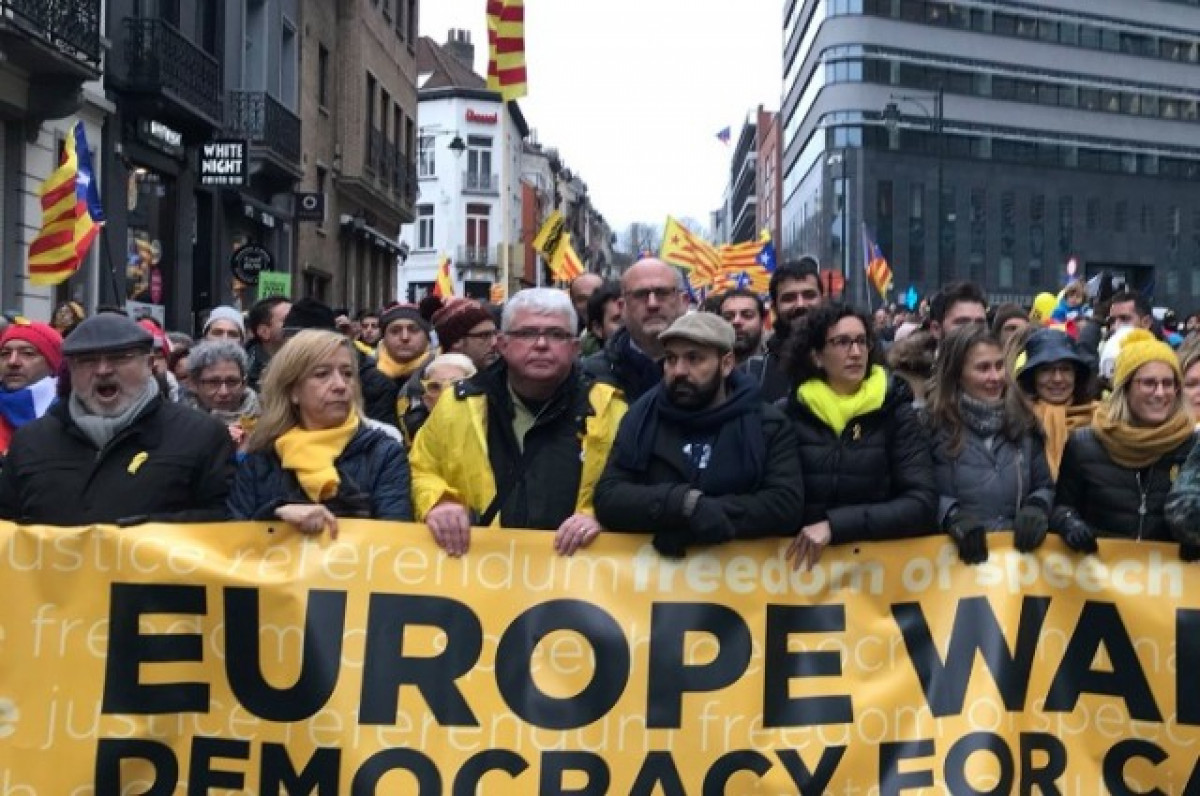 Rovira ha pronunciat aquest discurs al final de la manifestació que ha reunit 45.000 independentistes a la capital belga, en què ha estat acompanyada per altres companys de partit, com Gabriel Rufián.