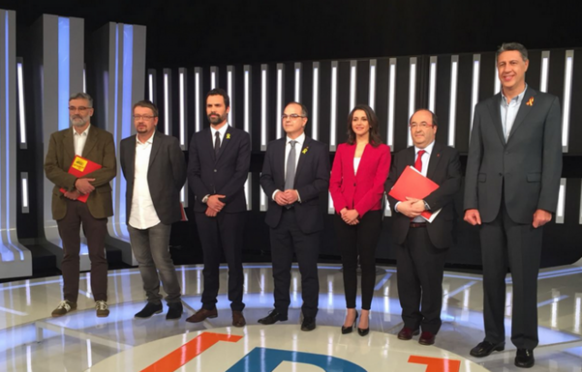 Els caps de llista de Ciutadans, Inés Arrimadas; PSC, Miquel Iceta; PP; Xavier Garcia Albiol; Catalunya A Comú-Podem, Xavier Domènech i la CUP, Carles Riera; han acudit a aquest primer debat dels comicis, mentre que en representació de JuntsxCat ha acudit el número quatre per Barcelona, l'exconseller Jordi Turull, i per ERC, Roger Torrent, el número dos per Girona.