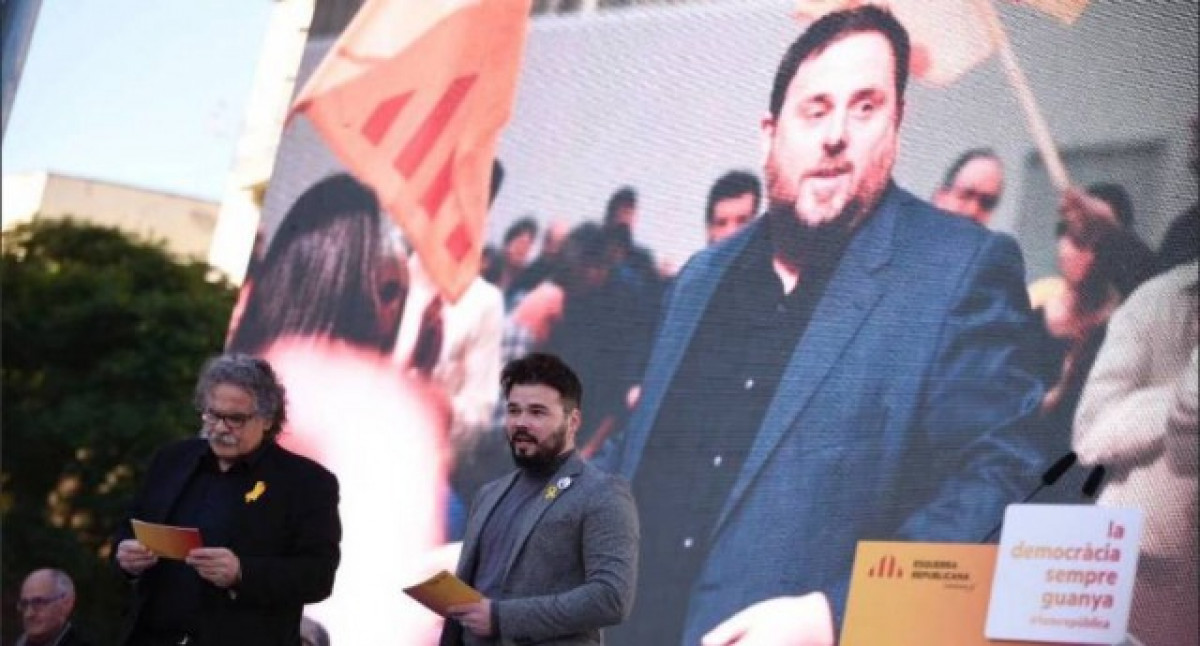 Joan Tardà i Gabriel Rufián aquest dissabte amb la imatge d'Oriol Junqueras de fons
