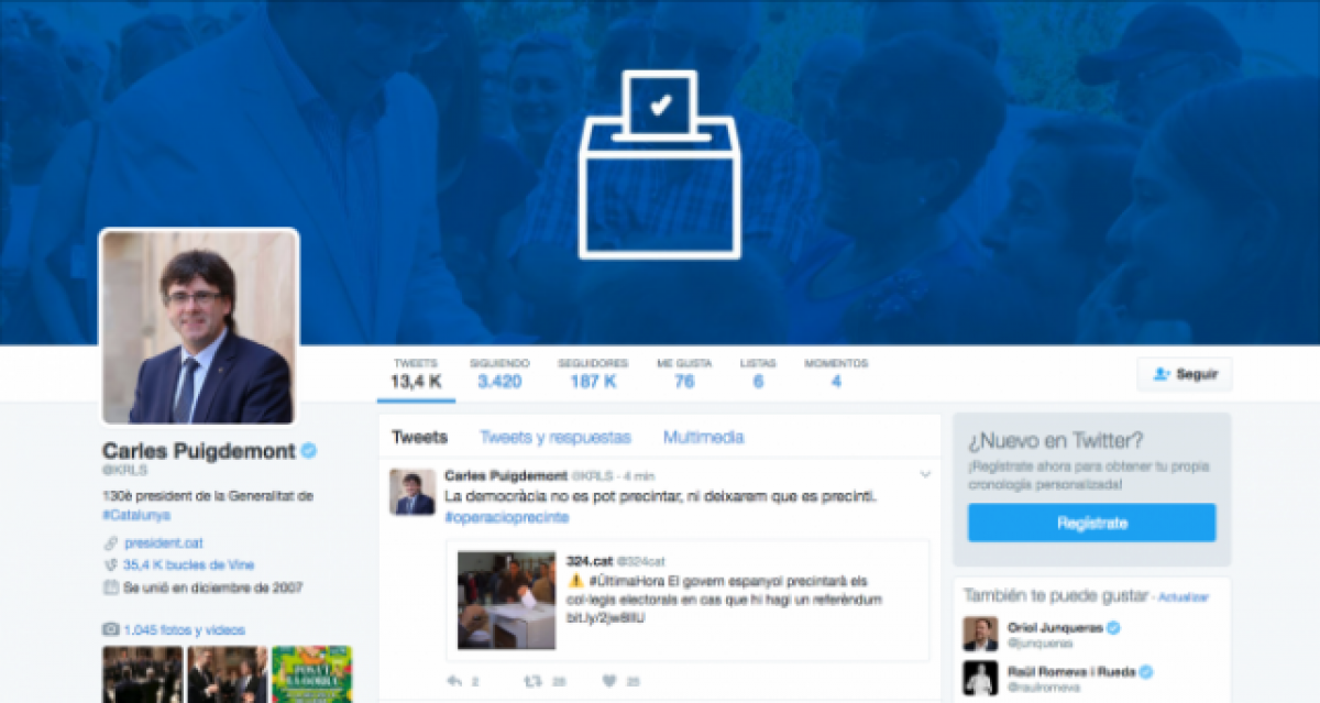 El compte de twitter de Puigdemont és el més esmentat pels usuaris espanyols en 2017