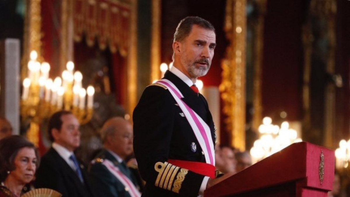 Felip VI ha pronunciat aquest discurs al saló del tron del Palau Reial durant la celebració de la Pasqua Militar, la primera a la qual han assistit els reis emèrits El rei Joan Carles i Sofia des de l'abdicació al juny de 2014.